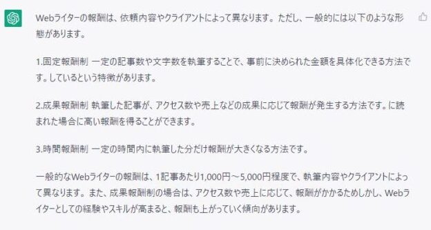 下記は、「Webライターの報酬事情」をAIに聞いてみた回答になります。